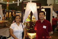Lally De Castro, ESC Team Head for International Operations presenting Jubilation New Binan to couple Stewart and Anna. Background shows the others being attended to by Bernadette Bisdeee and Chit Afuang. |